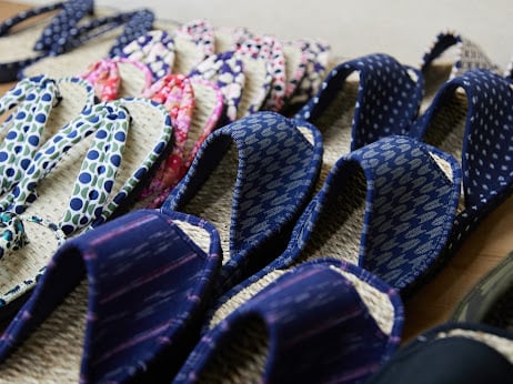 自然草(カヤツリグサ)を使用した履き物は、足裏に接する面が縄織の凹凸になっている為、