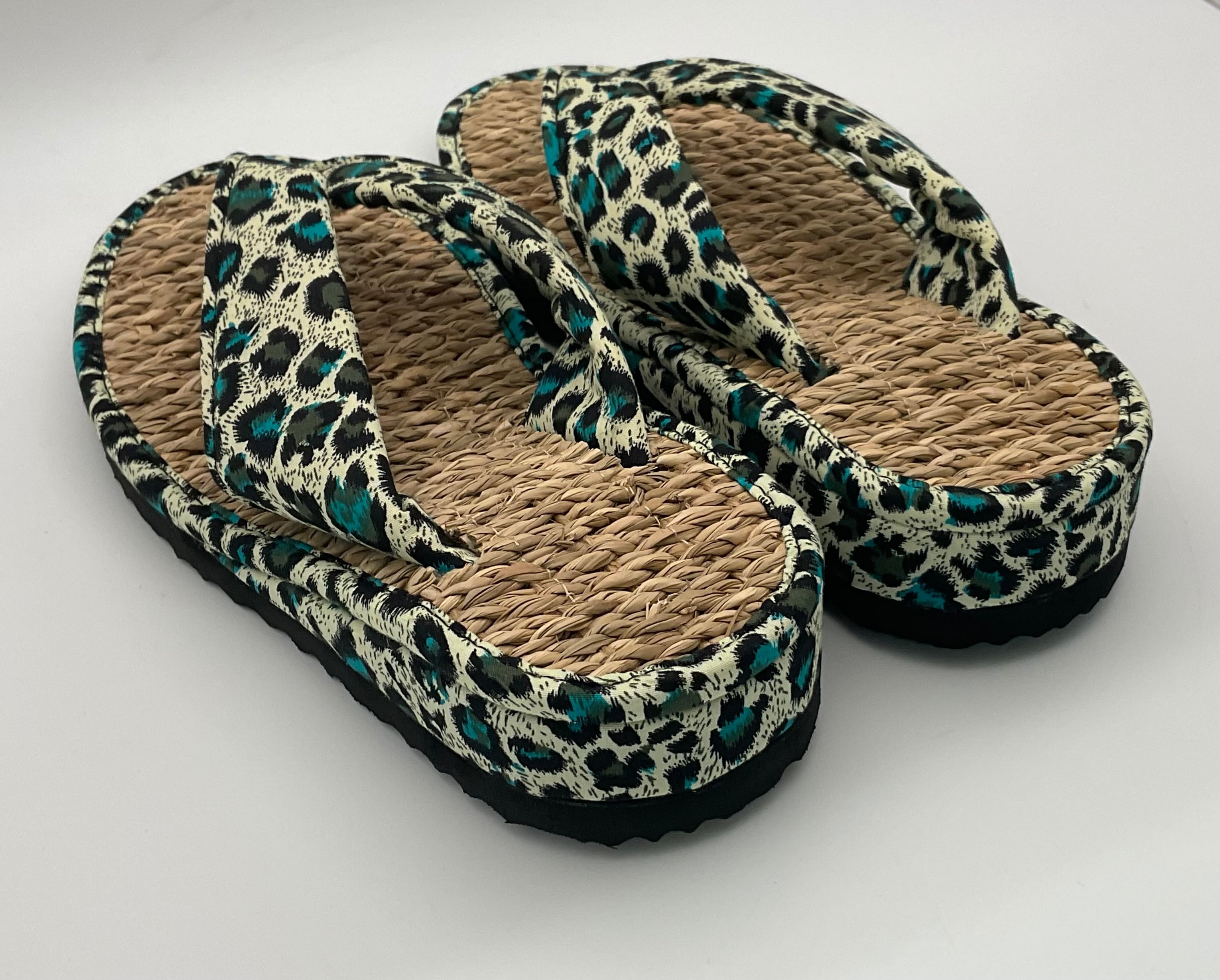 魅力的なヒョウ柄と爽やかな青色が特徴のカリプソ幅広 ヒョウ柄青。独特なデザインが足元に個性をプラスし、多様なスタイルに自然に調和します!伝統的な日本の美意識を感じさせる洗練された一足です。